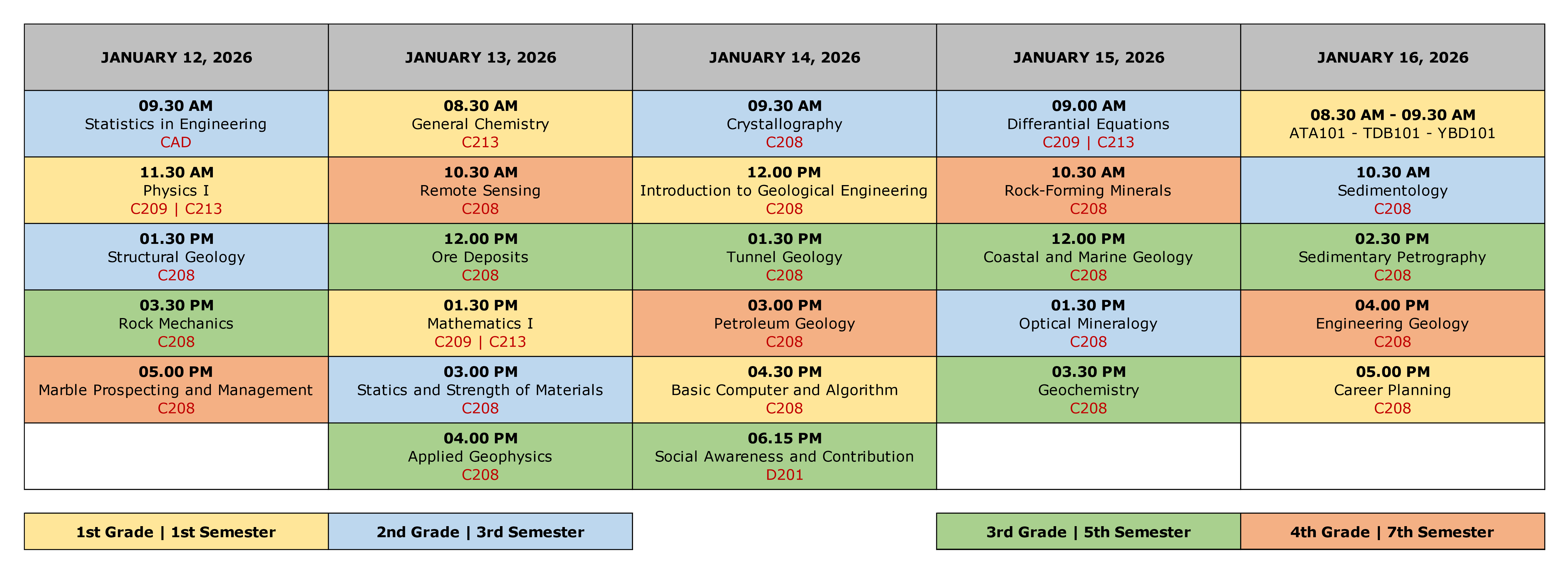 JEO101 Introduction to Geological Engineering 14/01/2026 12.00 PM C208