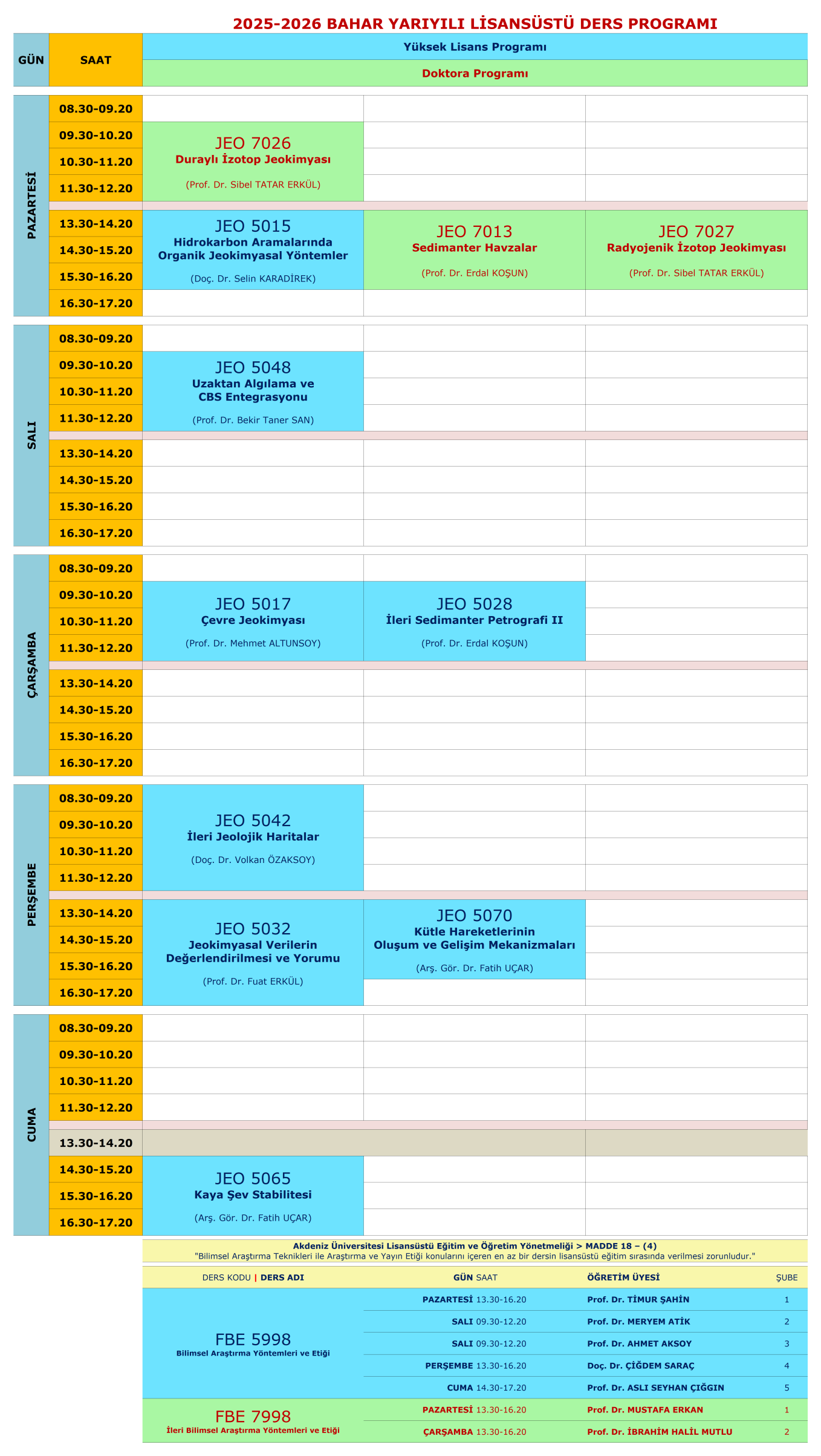 2025-26 | BAHAR | LİSANSÜSTÜ DERS PROGRAMI Eklenme tarihi: 23.01.2026 15:09:52 Son güncelleme: 9.02.2026 00:11:33